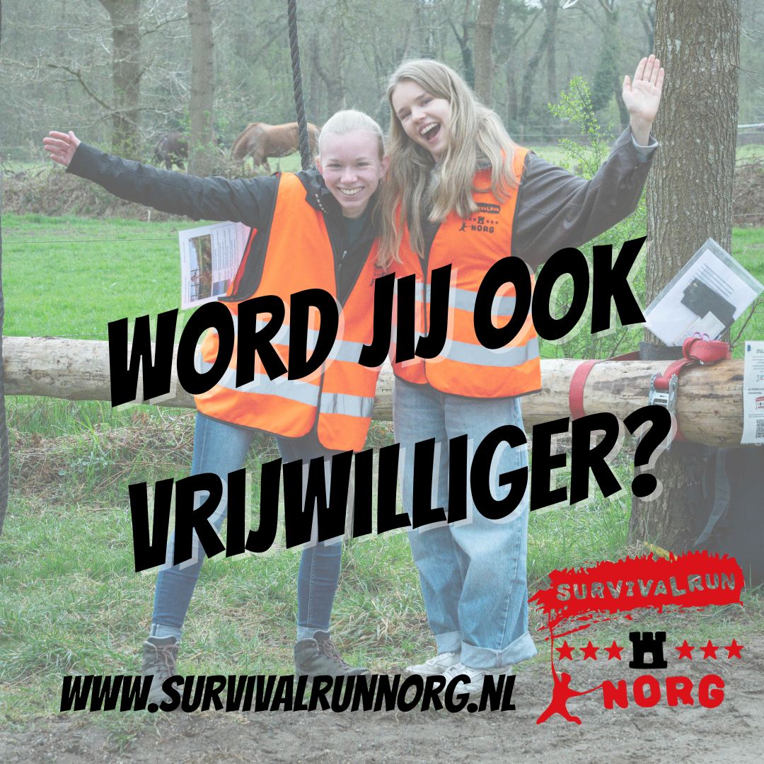 Donderdagavond 2 april 2026 organiseren we een informatieavond voor vrijwilligers. Op deze avond krijg je alle informatie en is er de mogelijkheid om vragen te stellen. Tijdens de survivalrun zelf worden vrijwilligers uiteraard voorzien van eten en drinken.